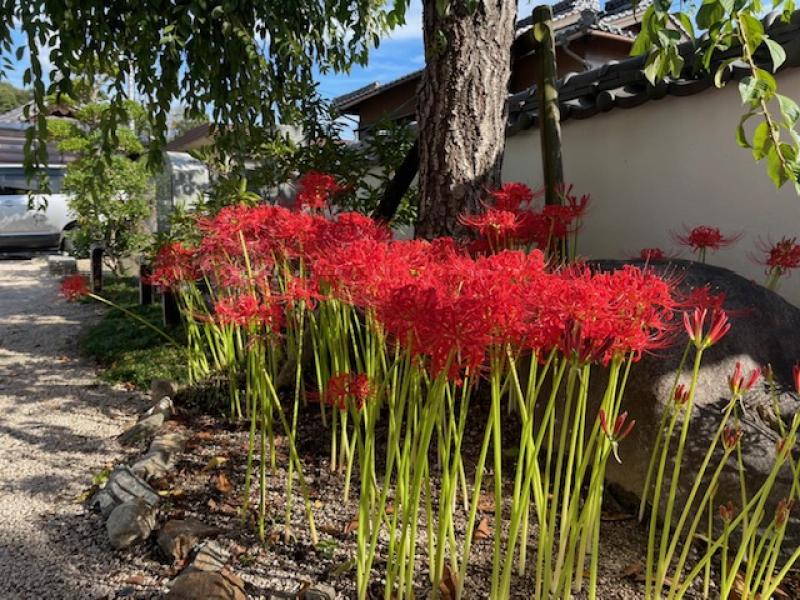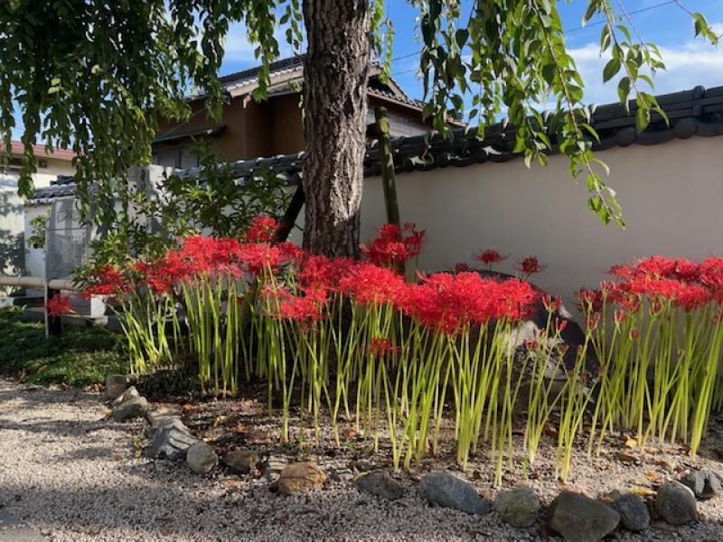 毎年、お彼岸の季節に花を咲かせる「彼岸花」。今年も境内の彼岸花が鮮やかな赤い花を咲かせました。